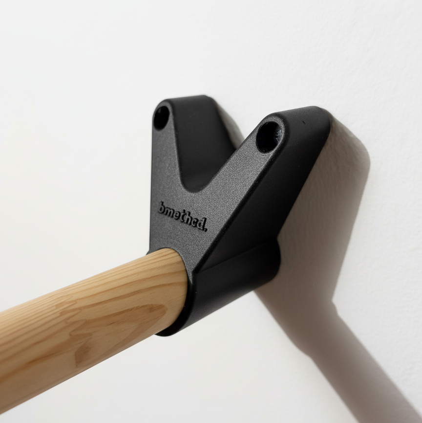 El soporte mural Bmethod. fabricado combinando la impresión 3D y la madera natural, hace elevarla a protagonista de tu hogar, fusionando la precisión futurista de la tecnología 3D con la calidez orgánica de la madera.
